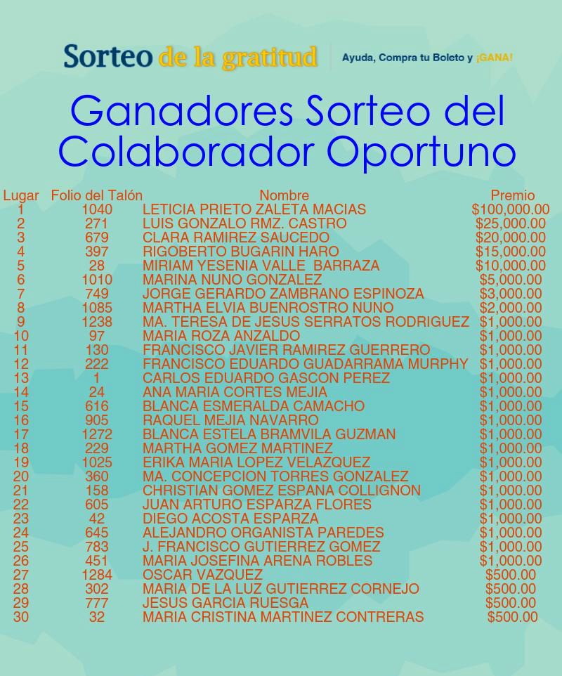 Ganadores Del Sorteo Del Colaborador Oportuno | Sorteo De La Gratitud